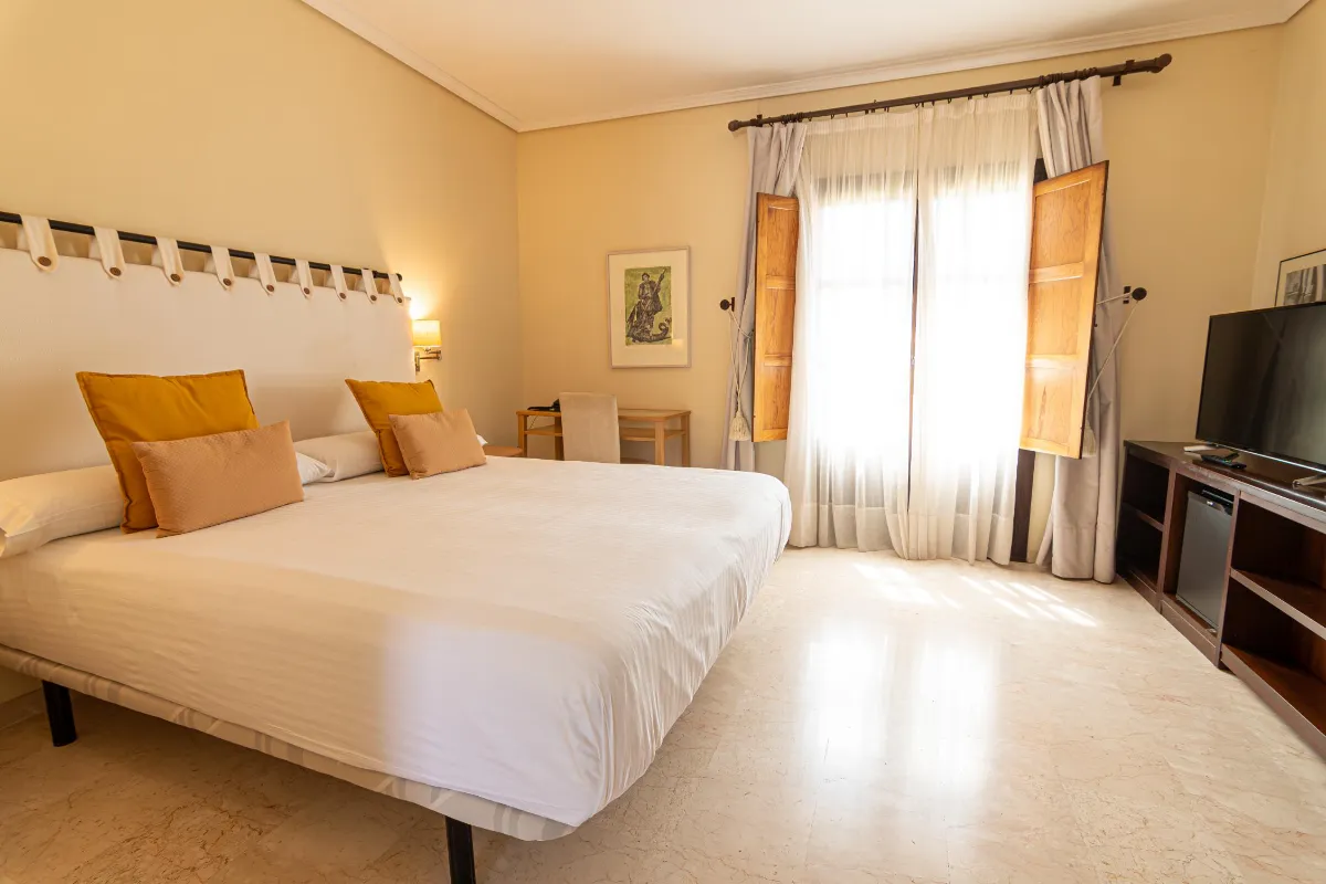 Les photos disponibles montrent des coins charmants du monastère : vue sur le cloître, la façade baroque, les jardins et le fleuve Èbre depuis la terrasse. On y retrouve également le décor du restaurant, de la salle à manger et des chambres très lumineuses, décorées dans un style à la fois historique et fonctionnel. Chaque photo dégage une impression de calme, d'espace et de propreté. Nous vous invitons à admirer ces images pour vous faire une idée de la sensation de paix et d'authenticité qui règne dans l’auberge de ce monastère restauré, où chaque recoin raconte une histoire. Vous êtes sur le point de l'entendre, de la lire et d’en faire l’expérience à l'Auberge du Monastère de Rueda.